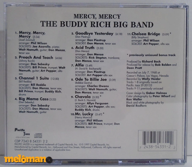 Músicas: Mercy Mercy Mercy / Preach And Teach / Channel 1 Suite / Big Mama Cass / Goodbye Yesterday / Acid Truth / Alfie / Ode To Billy Joe / Chavala / Mr. Lucky / Chelsea Bridge
