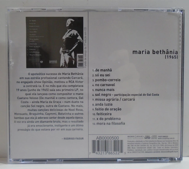 Músicas: De Manhã / Só Eu Sei / Pombo Correio / No Carnaval / Nunca Mais / Sol Negro / Missa Agrária / Carcará / Anda Luzia / Feitio De Oração / Feiticeira / X Do Problema / Mora Na Filosofia
